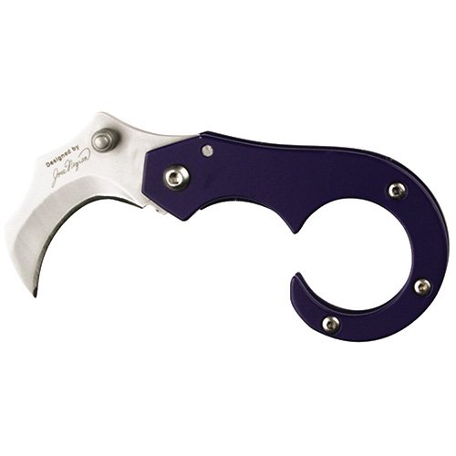 The Blue Talon folding knife designed by Jose Negron features an extremely sharp 440 stainless steel talon shaped blade with a quick opening thumb stud and the Jose Negron logo. The comfortably contoured blue finished handle features an elongated hook shaped pommel. At an overall length of 3 3/4 inches, the Blue Talon folding knife comes complete with a durable pocket clip.